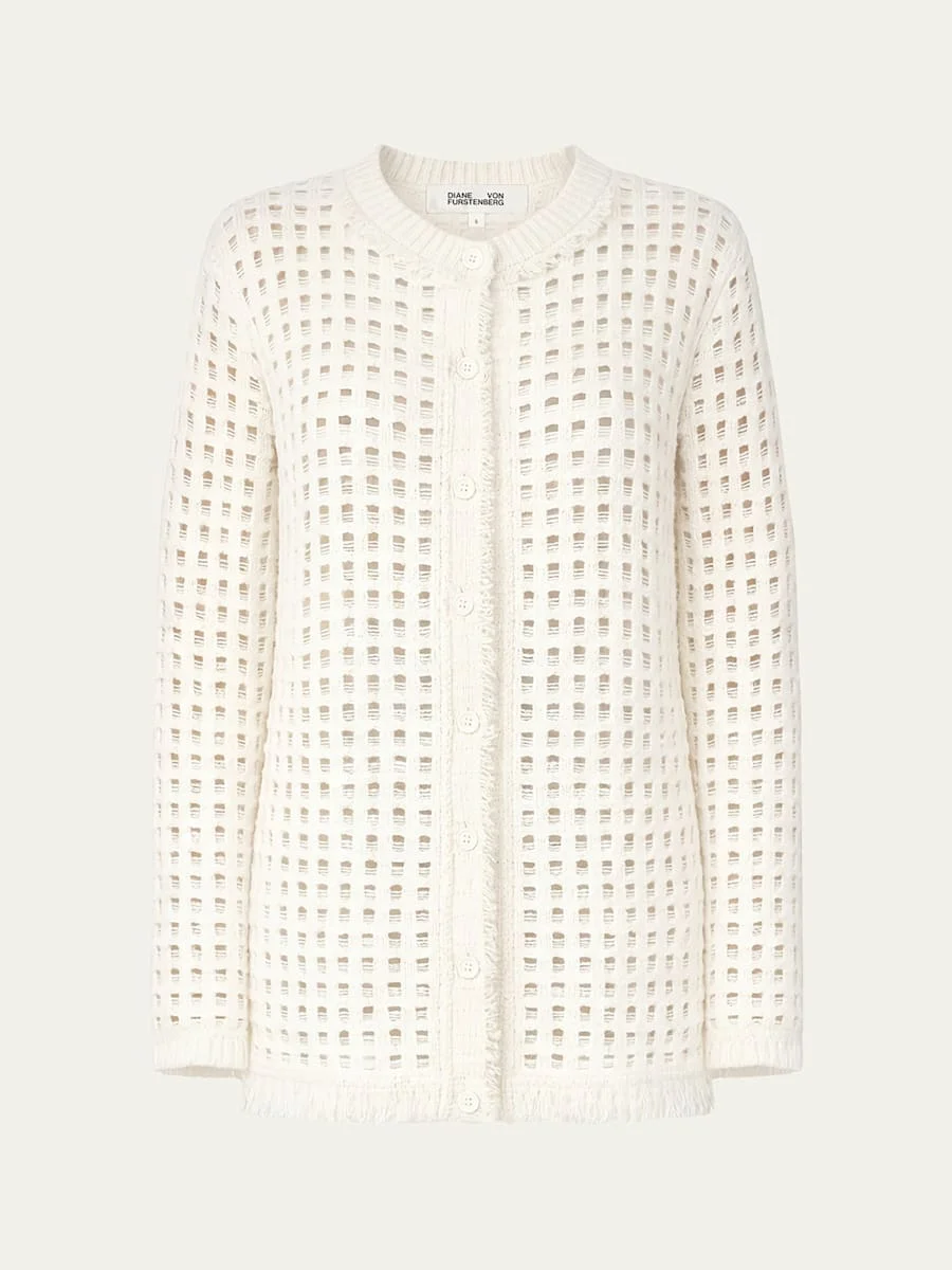 Celestina Fringed Open-Stitch Cardigan