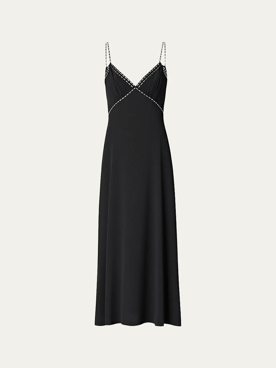 Designed in a fluid silk fabric, this "Iris" midi dress from Diane von Furstenberg is trimmed in glittering baguettecut glass beading along the bust and shoulder straps V neckline Sleeveless Empire waist Hem falls below the knee Aline silhouette Silk Imported