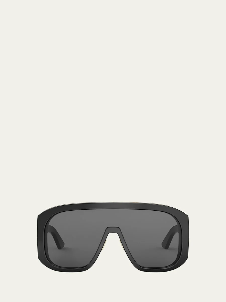 Dior "Diorgraphique M2U" shield sunglasses in plastic Seen at the Spring-Summer 2025 fashion show Eye/bridge/temple (in mm): 134-0-130 Solid lenses Adjustable nose pads Wide, tapered arms Bold logo on the temples Plastic 100% UVA/UVB protection Made in Italy Proposition 65 warning for California residents Online Inquiries: BGS21_D59CD| Store Inquiries: #5026191