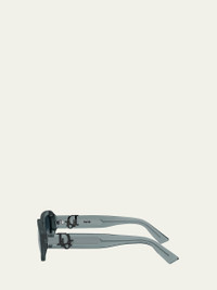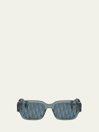 DIOR rectangle sunglasses in acetate Lens/bridge/temple (in mm): 37.620145 Logopatterned lenses Left lens logo script Saddle nose bridge Metal dior oblique logo clipped on temples Exposed metal corewire Acetate 100% UVA/UVB protection Made in Italy