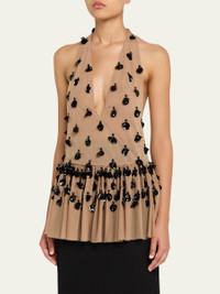 Embellished Plunging Halter Peplum Top