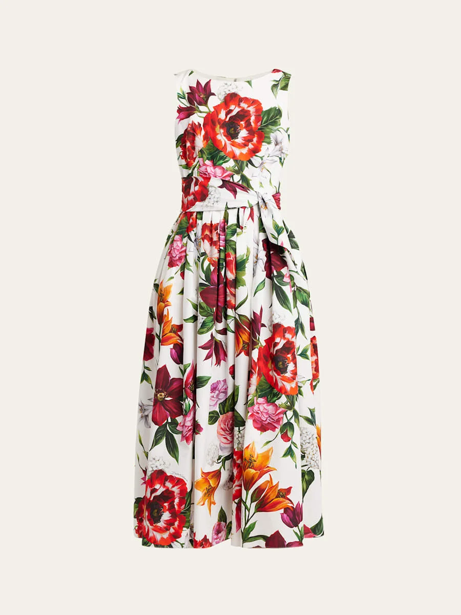 Dolce&Gabbana popline dress fetauring anemone floral print, a waist sash, and a pleated skirt High neckline Sleeveless Self-tie belted waist Hem falls below the knee A-line silhouette Concealed back zip Cotton Made in Italy Online Inquiries: BGS21_BA2XK| Store Inquiries: #5021174