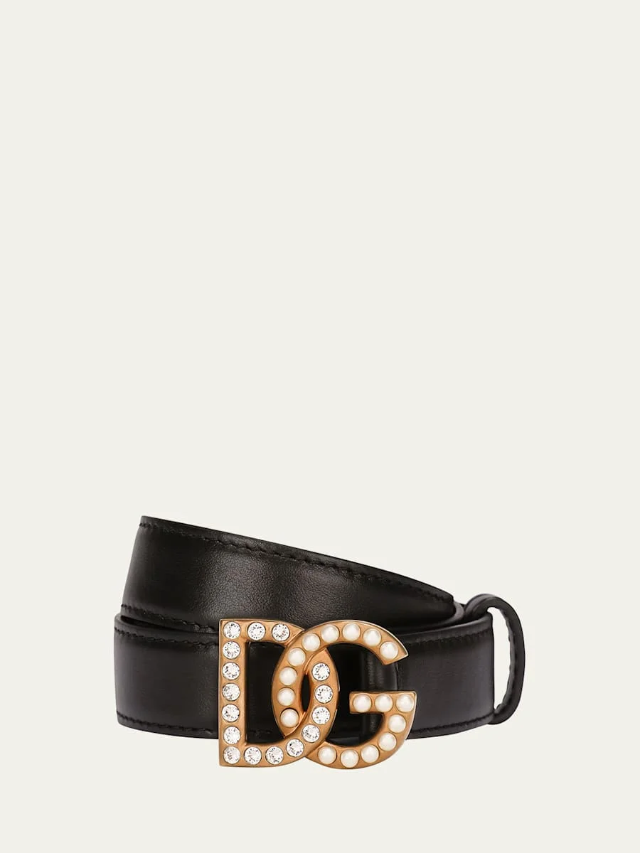 Embellished Pearly Interlocking DG Leather Belt