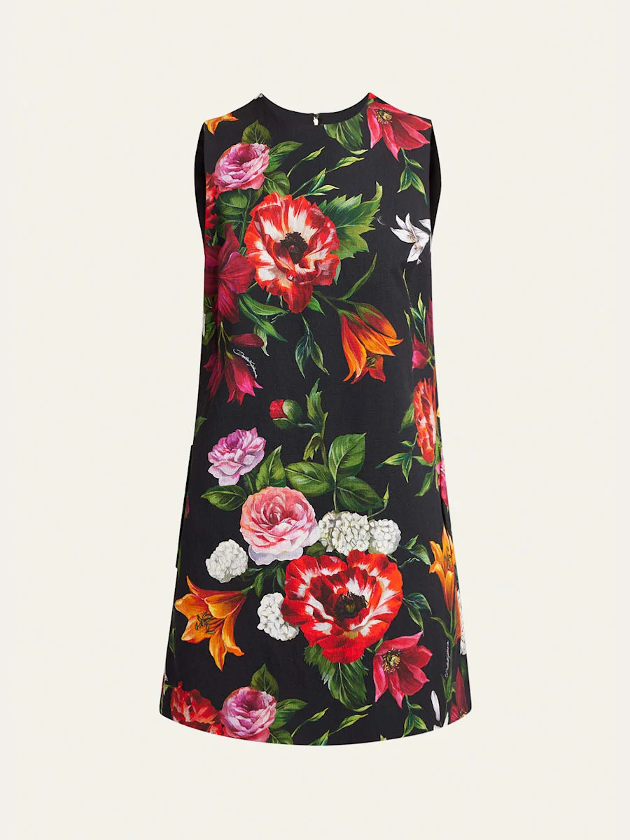 Dolce&Gabbana dress featuring a floral print and welt pockets Round neckline Sleeveless Shift silhouette Mini length Concealed back zip Cotton/spandex/nylon/polyamide Made in Italy Online Inquiries: BGS21_BA5QB| Store Inquiries: #5040800