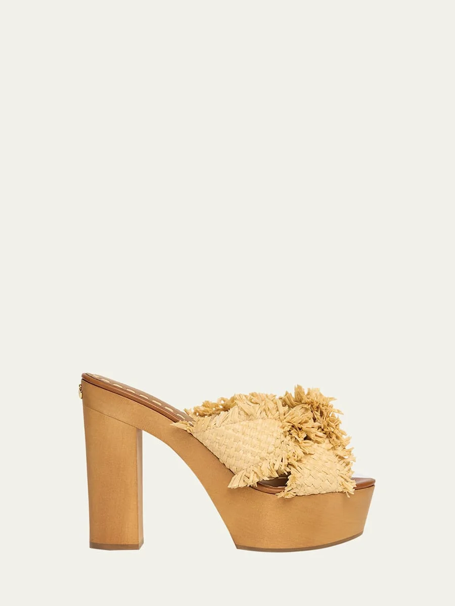 Dolce&Gabbana cotton-ProModal® rayon raffia and leather sandals with a knotted accent 3.15 in / 80 mm wooden platform heel; 1.00 in / 25 mm platform Peep toe Crossover vamp straps Goldtone DG logo on back of heel Slip-on style Leather outsole Professional cleaning recommended, spot clean Made in Italy Online Inquiries: BGS21_X6W85| Store Inquiries: #5016729