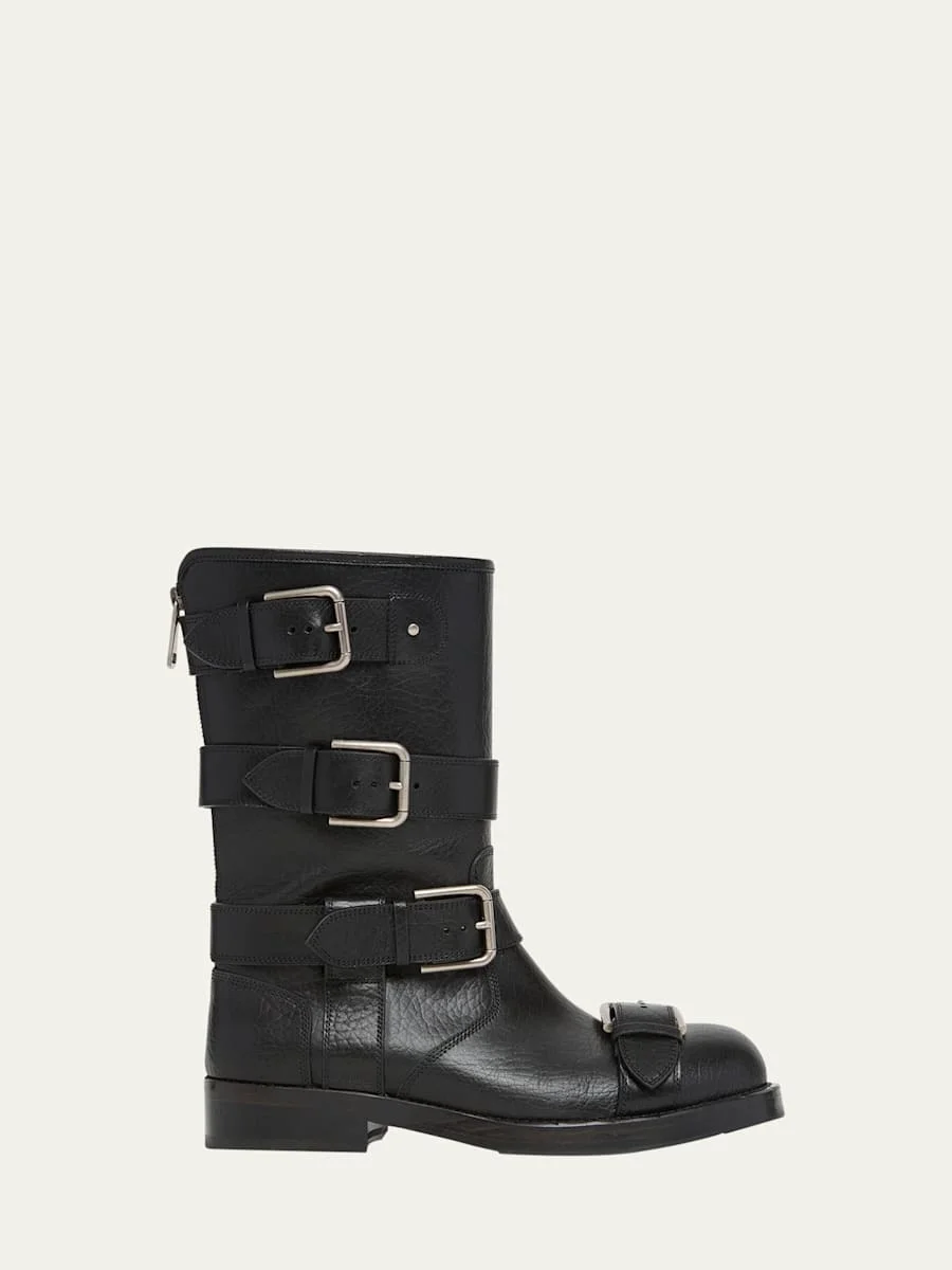 Dolce&Gabbana over-the-knee boots in pebbled leather with silver-tone buckles Flat heel Round toe Adjustable buckle straps Back zip eases dress Leather outsole Made in Italy Online Inquiries: BGS21_X6YCM| Store Inquiries: #5053089