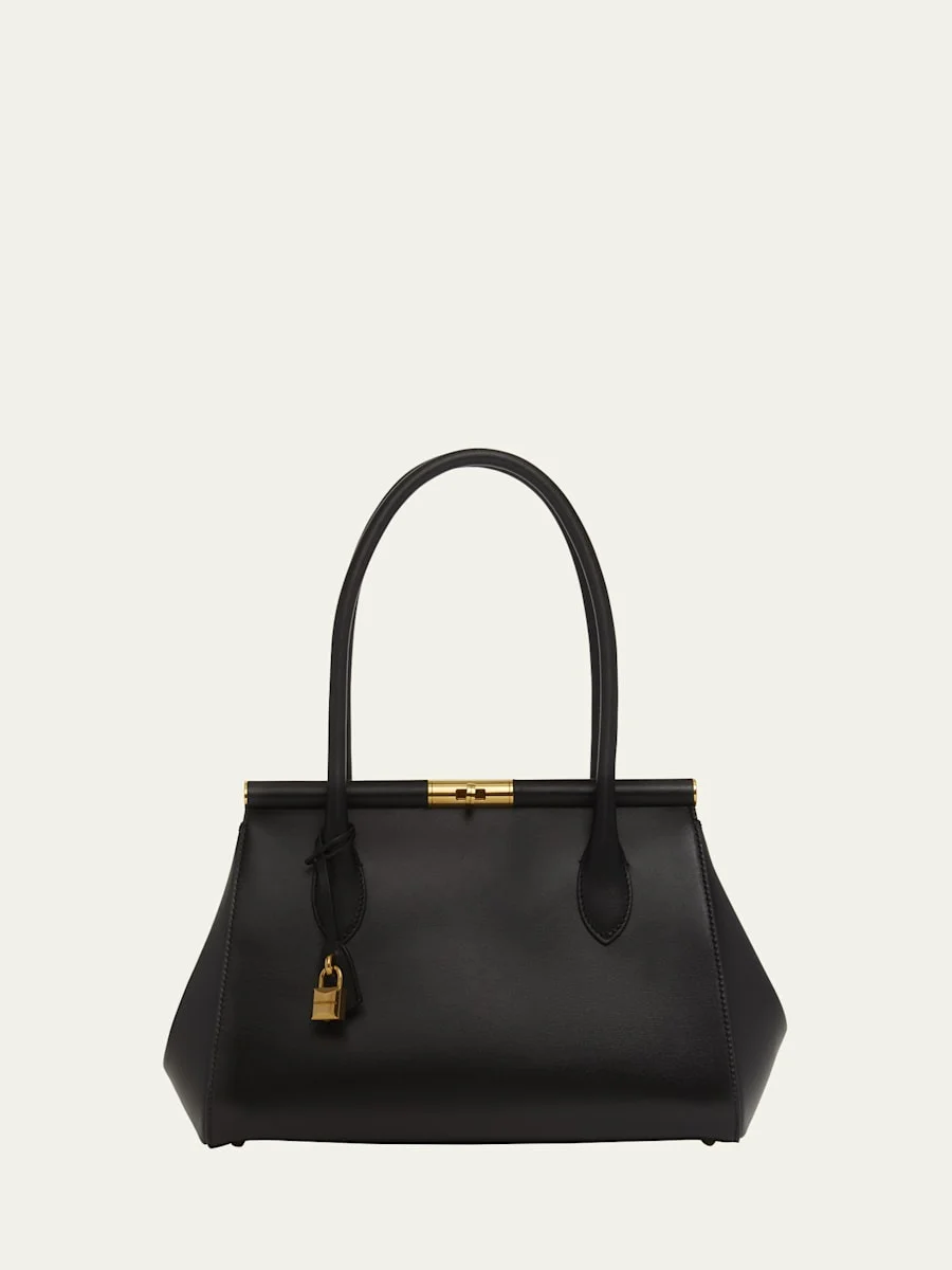 Dolce&Gabbana "Marlene" top handle bag in leather Rolled top handles with padlock hardware Framed top with turn-lock closure Interior, one zip pocket Feet protect bottom of bag Approx. 8"H x 12"W x 5"D Made in Italy Online Inquiries: BGS21_V6DEF| Store Inquiries: #4915327