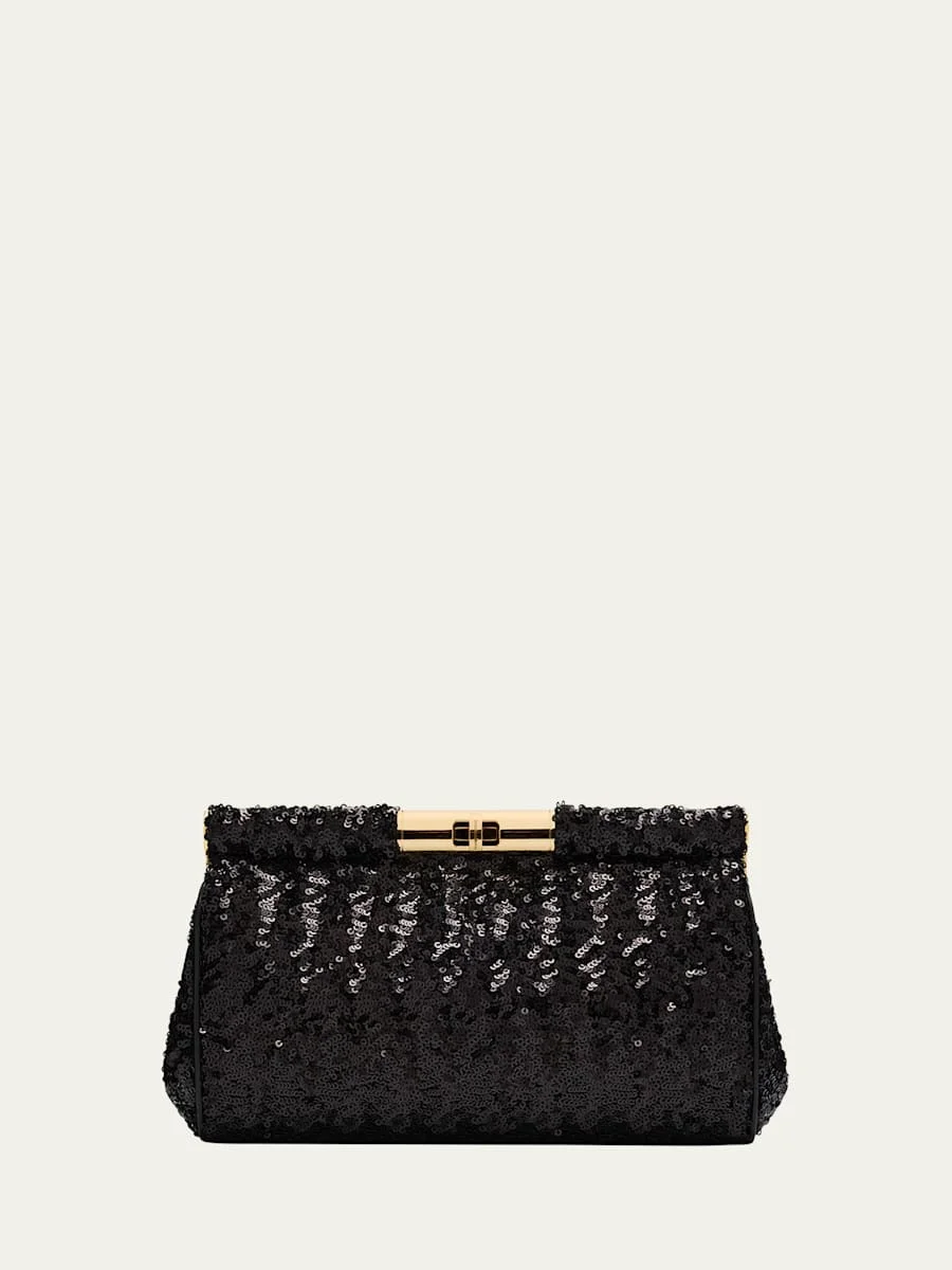 Dolce&Gabbana "Marlene" clutch bag in sequin-embellished polyester, ProModal® rayon, and leather Detachable chain shoulder strap Can be worn as a clutch or shoulder bag Structured top with turn-lock closure Interior, one slip pocket Approx. 6"H x 9"W x 2"D Made in Italy Online Inquiries: BGS21_V69XU| Store Inquiries: #4843935