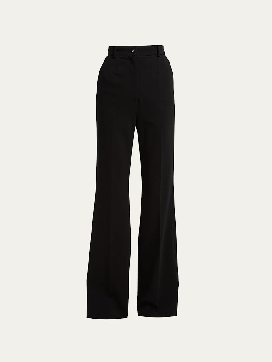 Dolce&Gabbana Milan stitch jersey flared trousers Mid-rise; sits high on hip Button/zip fly; belt loops Side slip pockets; back welt plckets Straight legs; flared at the knee Full length Rayon/cellulose acetate/nylon/polyamide/spandex Made in Italy Model is 5'10"/177cm. Online Inquiries: BGS21_B8WPF| Store Inquiries: #4674015