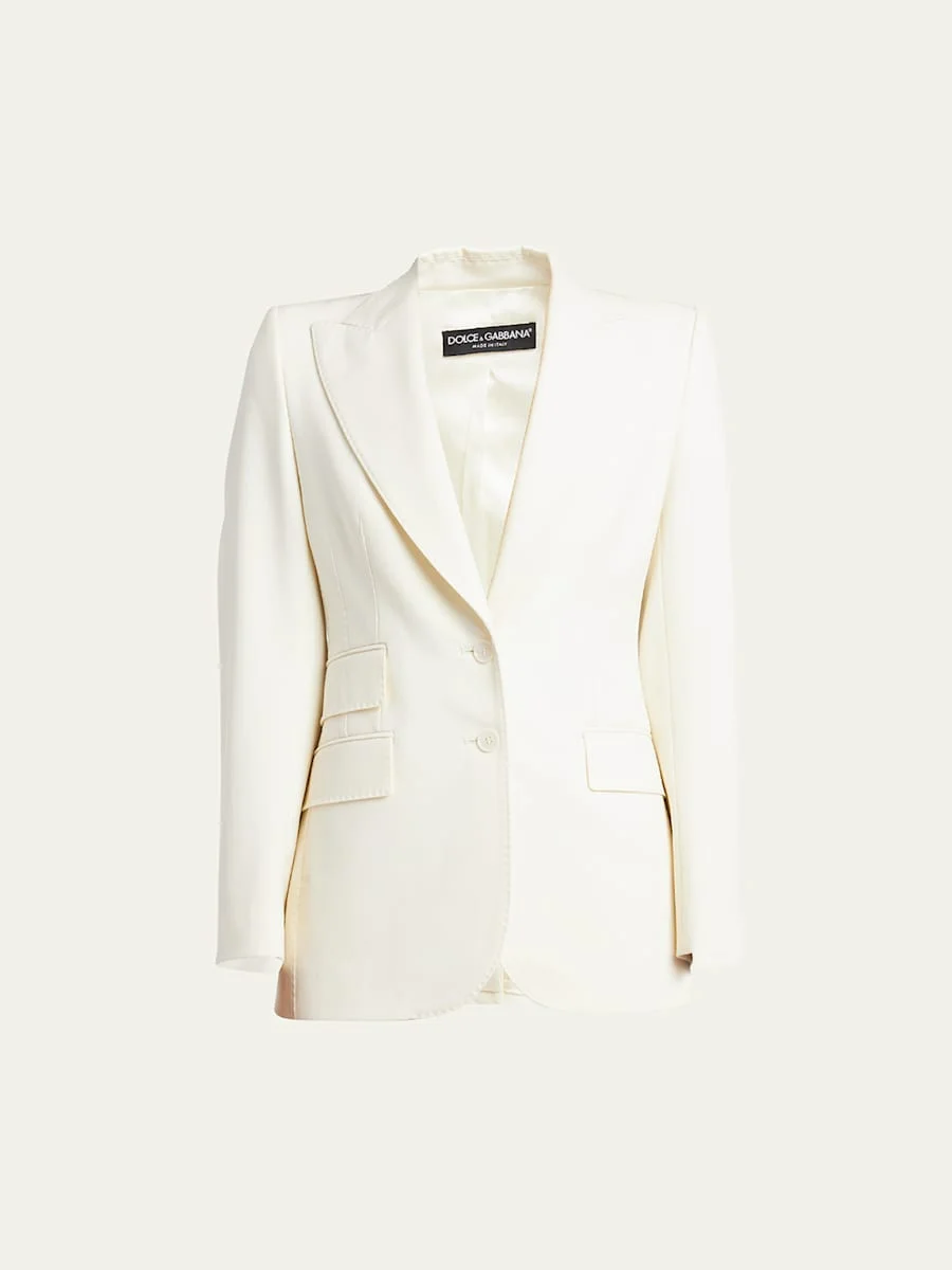 Dolce&Gabbana stretch blazer Peak lapels; button front Long sleeves; button cuffs Flap pockets Slim fit Back walking vent Spandex Silk lining Made in Italy Model is 5'10"/177cm. Online Inquiries: BGS21_B8WPC| Store Inquiries: #4674012