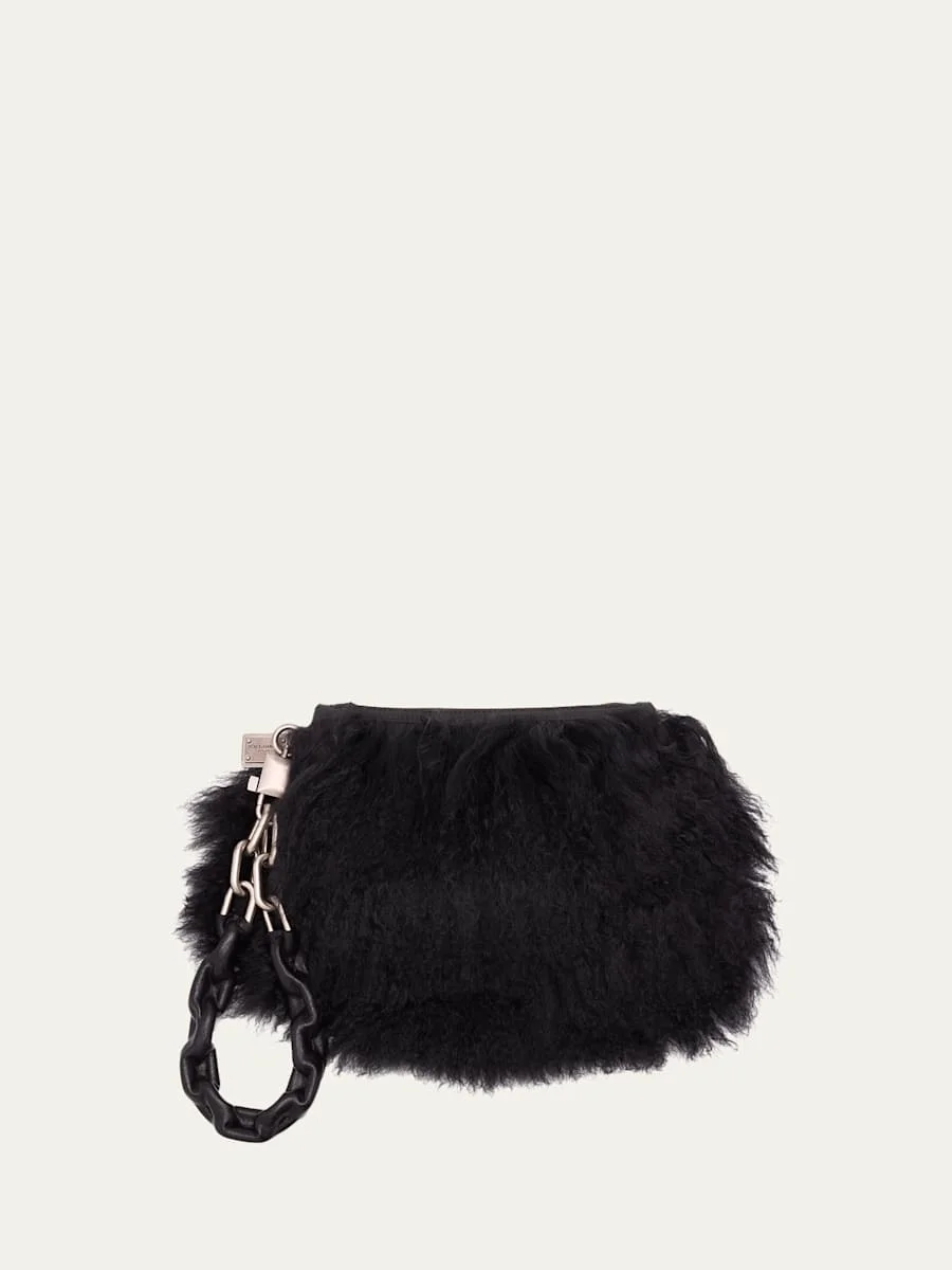 Dolceamp;Gabbana clutch bag in bleached and dyed shearling (Italy), finished with smooth leather Detachable covered chain wristlet strap Zip top closure Interior, one card slot Approx. 5.5"H x 10"W x 1"D Made in Italy