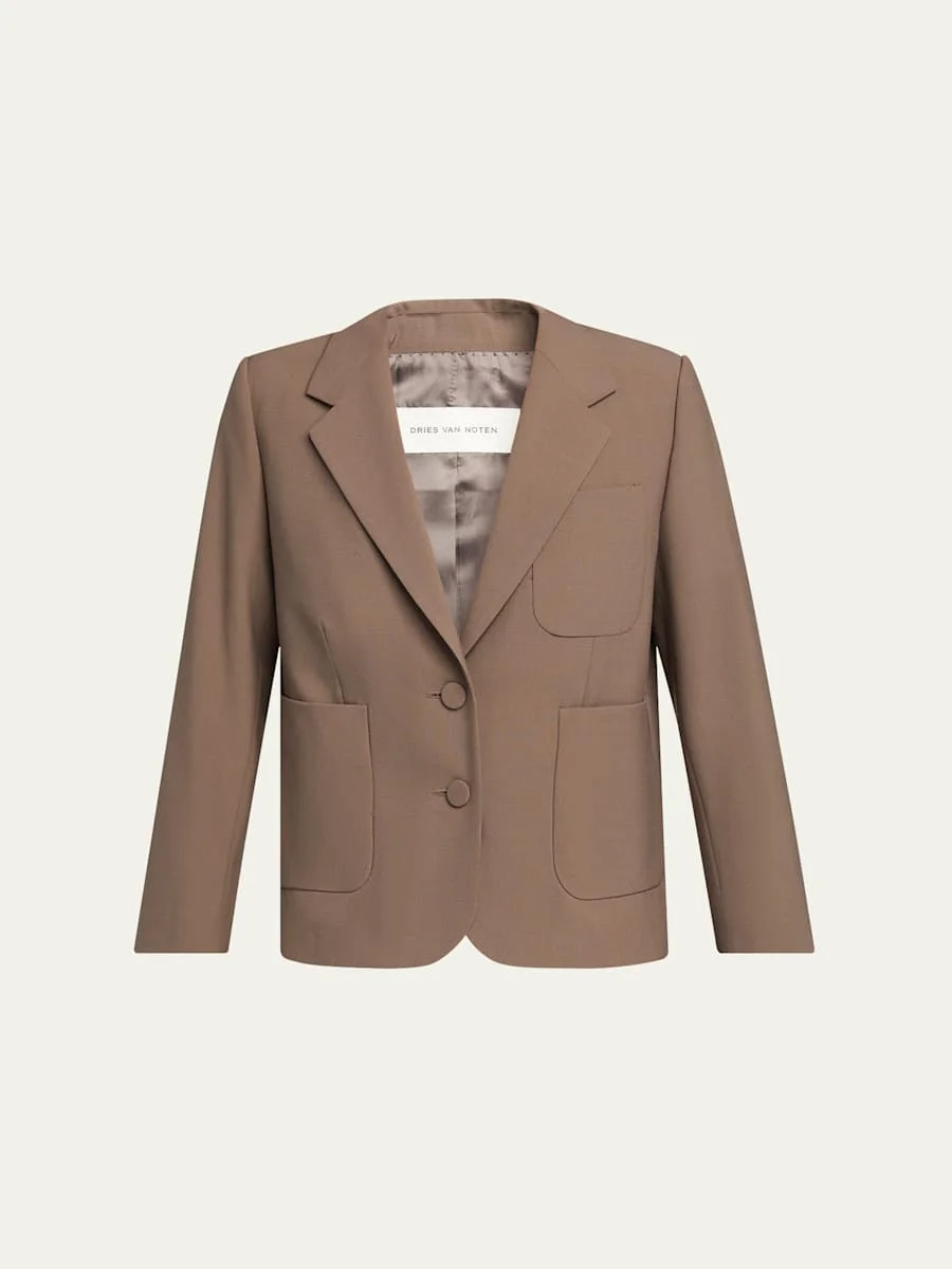 Crafted from a woolblend with a hint of stretch for a comfortable fit, the "Bamis" blazer by Dries Van Noten is a versatile wardrobe staple Notched collar; twobutton front 3/4 sleeves; button cuffs Front patch pockets Centercut back vent Relaxed fit Midlength Polyester/wool/elastane Lining: Viscose/cupro Made in Morocco