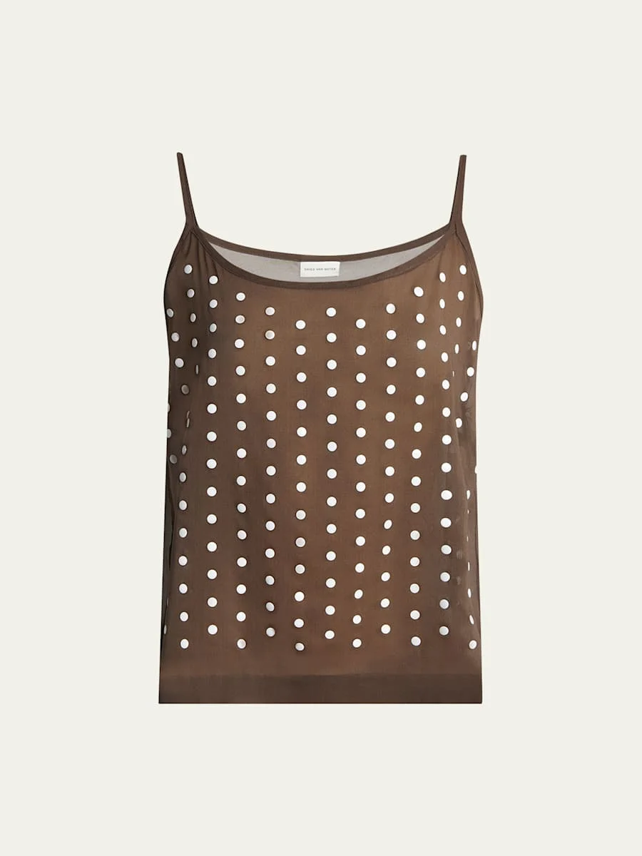 Calipso Polka-Dot Printed Sheer Cami Top