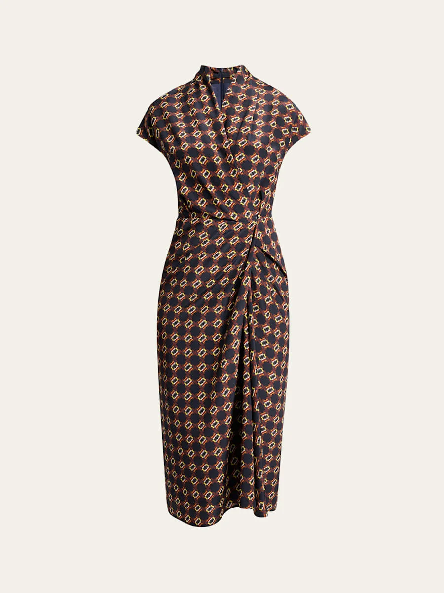 Dilian Geo-Print Draped Wrap Midi Dress