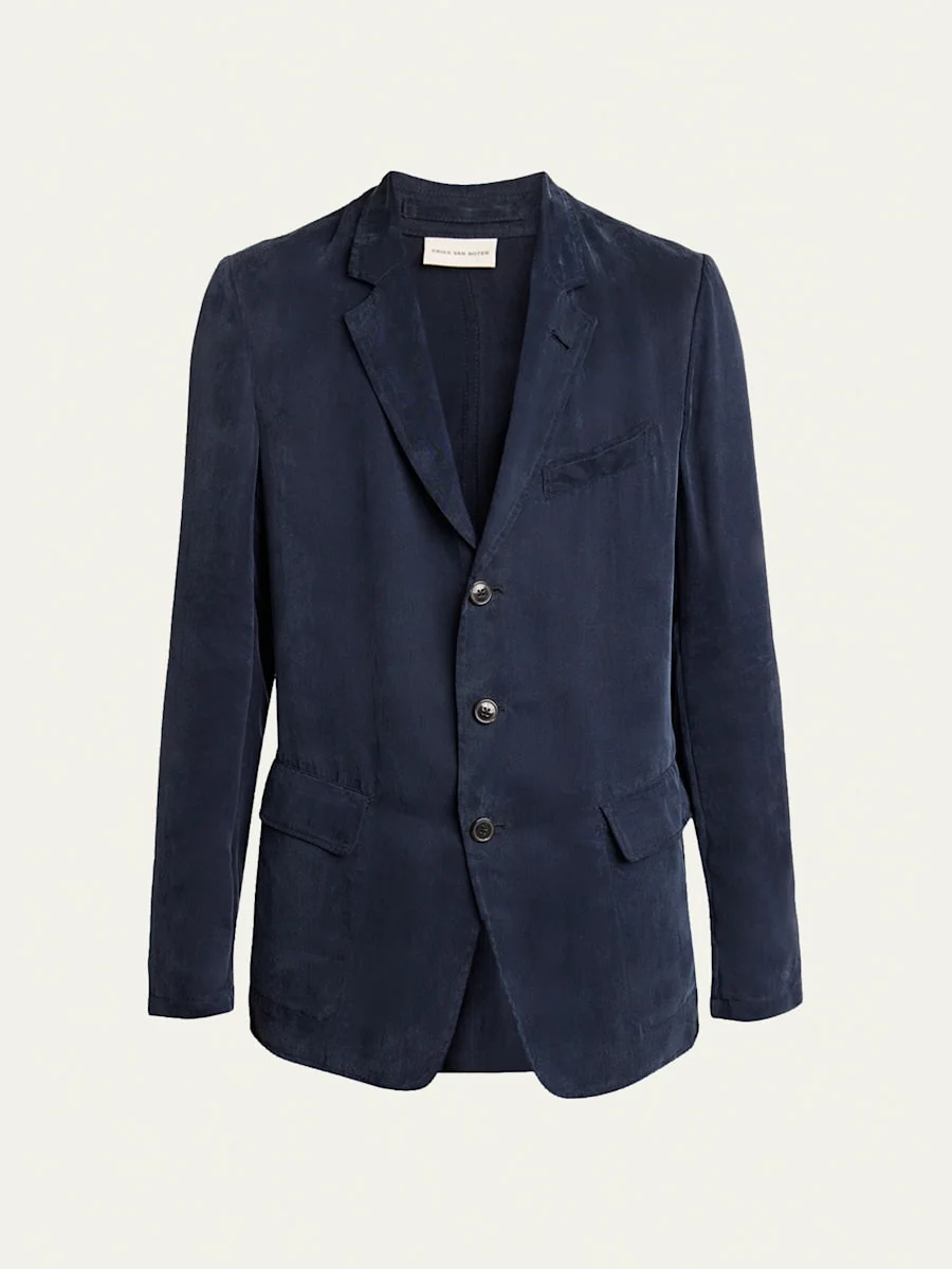 Dries Van Noten jacket showcasing a soft finish with a luxurious drape Notch lapels Singlebreasted front Chest welt pocket Hip flap pockets Fourbutton cuffs Cupro Made in Bulgaria