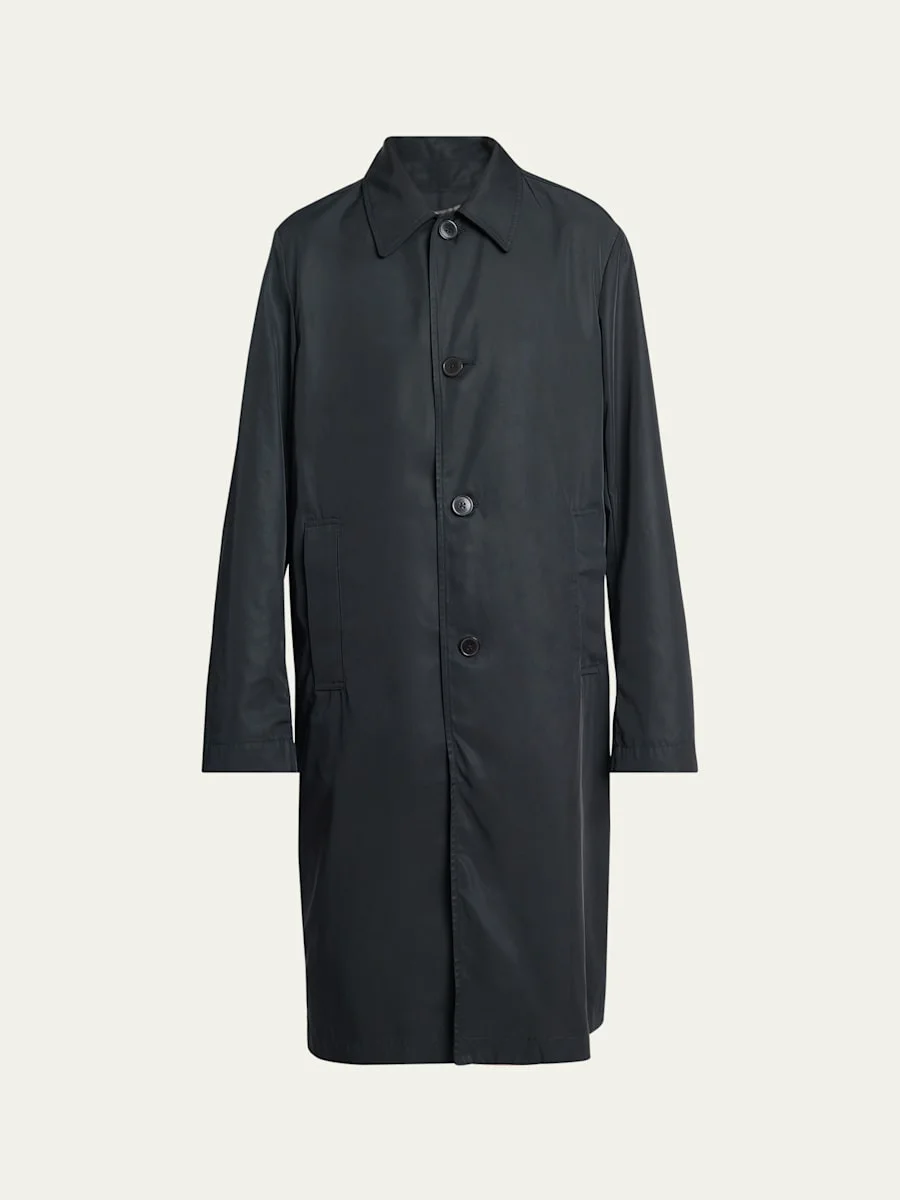 Dries Van Noten "Rankles" solid topcoat Point collar Button closure Broad welt pockets Relaxed fit Polyester Made in Romania Online Inquiries: BGS21_NCVCL| Store Inquiries: #4960066