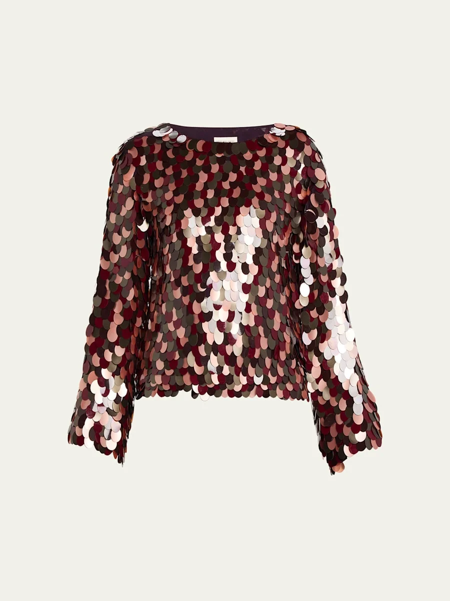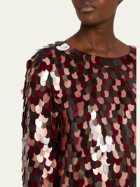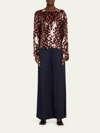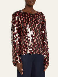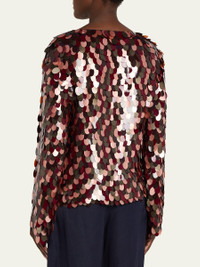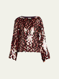 Multi-color paillette top by Dries Van Noten. Wide neckline Long sleeves Relaxed fit Hem falls to the hip Pullover style Viscose Dry clean Imported Online Inquiries: BGS21_BAAM0| Store Inquiries: #5068537