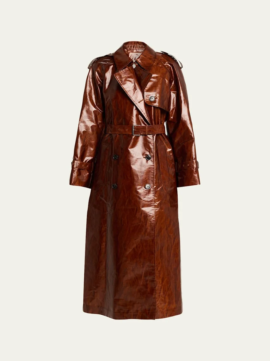 Ristos Shiny Coated Belted Trench Coat