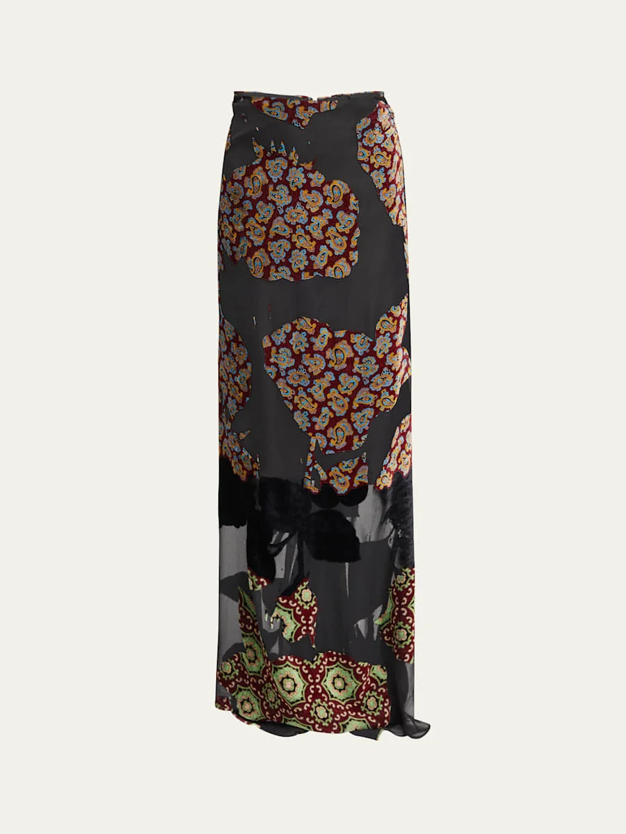 Dries Van Noten "Salvix" skirt is crafted of paisley velvet burnout High waist Full length A-line silhouette Back zip Viscose/silk Lining: Viscose Made in Poland Online Inquiries: BGS21_BAAJS| Store Inquiries: #5068461