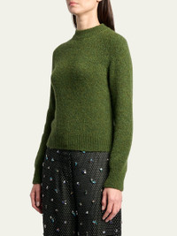 Dries Van Noten "Texas" sweater is crafted of a luxuriously soft alpaca-blend knit for cool-weather sophistication that pairs perfectly with tailored or relaxed separates Mock neckline Long raglan sleeves Relaxed fit Ribbed cuffs and hem Pullover style Alpaca/merino wool Made in Belgium Online Inquiries: BGS21_BAAMG| Store Inquiries: #5068596