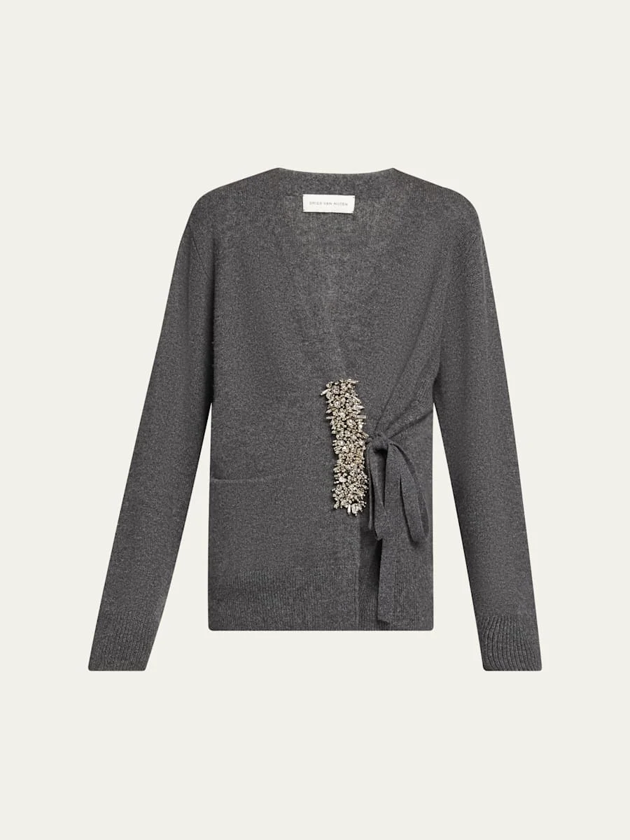 Embellished cashmere wrap cardigan
