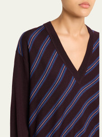 Tishana Striped V-Neck Wool Sweater