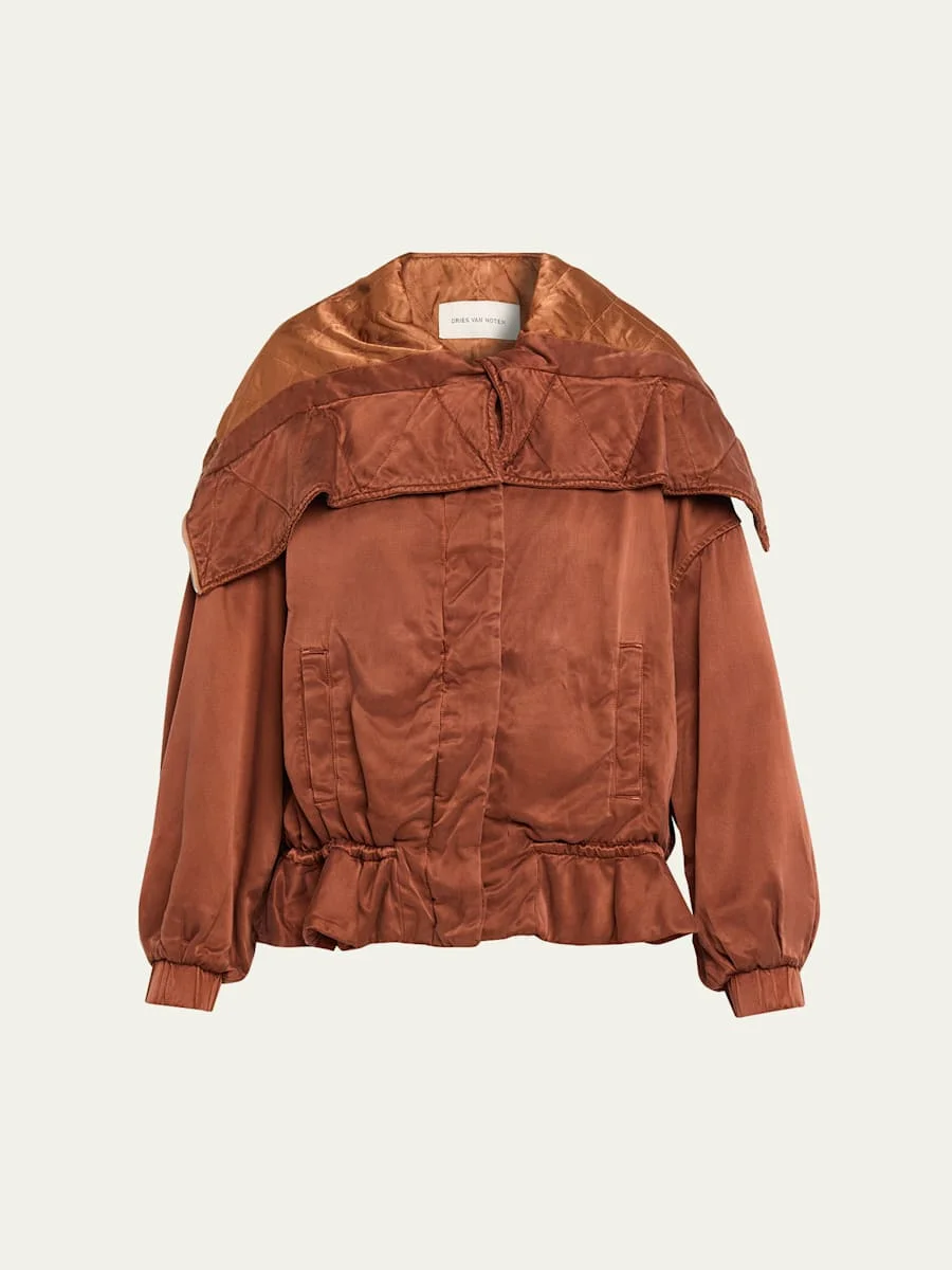 Dries Van Noten "Villa" satin jacket elevated with a zipped hood for versatile styling Dropped shoulders Long sleeves with elastic cuffs Side pockets Relaxed fit Drawcord hem Concealed zip-front Cupro/cotton Dry clean Imported Online Inquiries: BGS21_BAANH| Store Inquiries: #5068634