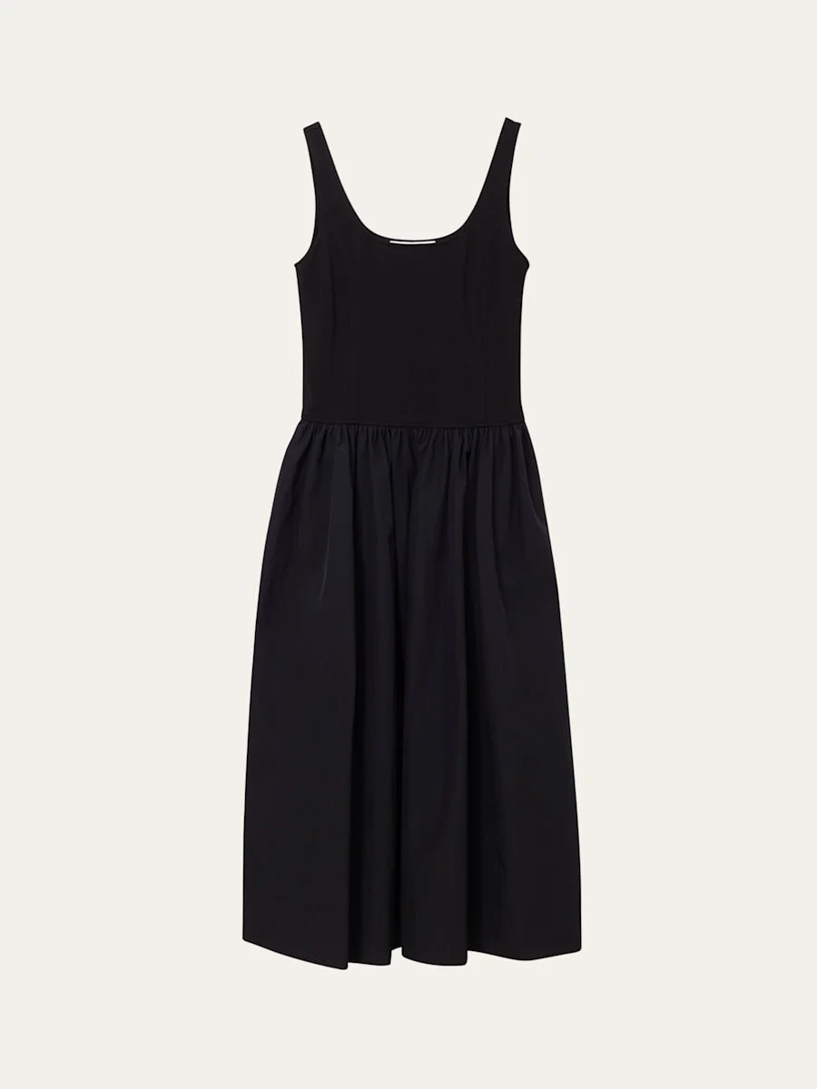 Dunst mixed midi dress featuring a jersey bodice finished with a cotton skirt Scoop neckline Sleeveless A-line silhouette Hem falls below the knee Slipover style Polyester/cotton/polyurethane Imported Online Inquiries: BGS21_T6KWL| Store Inquiries: #4999911