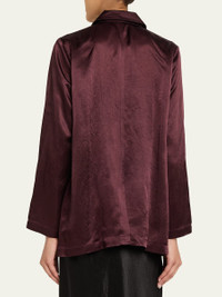 Crafted of medium-weight satin, this Eileen Fisher blazer sports a uniquely crinkled texture with high shine Made from Naia™ Renew, a cellulosic fiber produced in part with recycled material Approx. 30"L from shoulders to hem Notched lapels Single-breasted front Long sleeves Hip flap pockets Center back slit Relaxed fit Acetate Machine wash cold Imported Online Inquiries: BGS21_T6WTP| Store Inquiries: #5054874