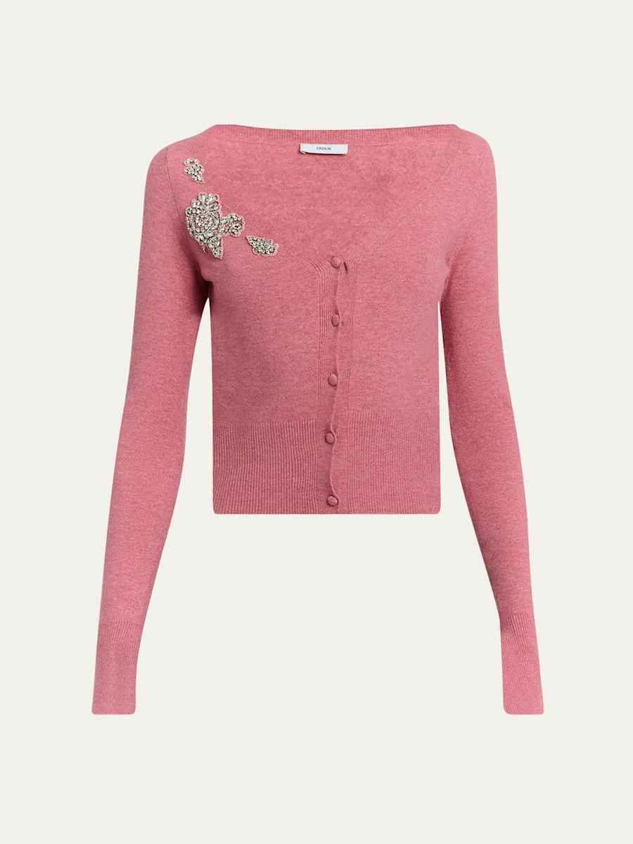 Erdem cardigan decorated with shimmering crystal beadwork V neckline Self-covered button front Long sleeves with slit cuffs Cropped length Slim fit Nylon/polyamide/viscose/merino wool Do not iron, dry clean Imported Online Inquiries: BGS21_BA6WC| Store Inquiries: #5042746