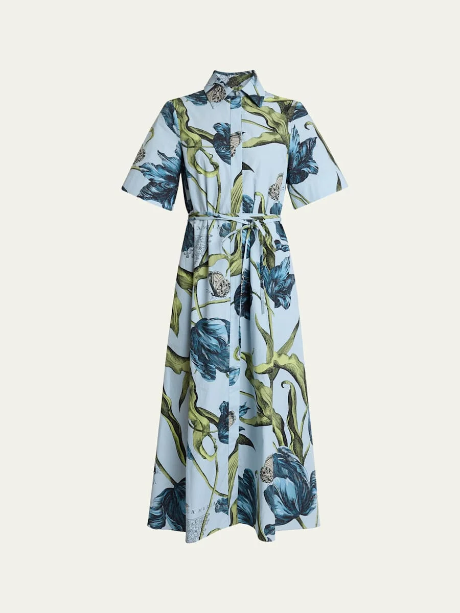 Floral-Print Cotton Short-Sleeve Midi Shirtdress