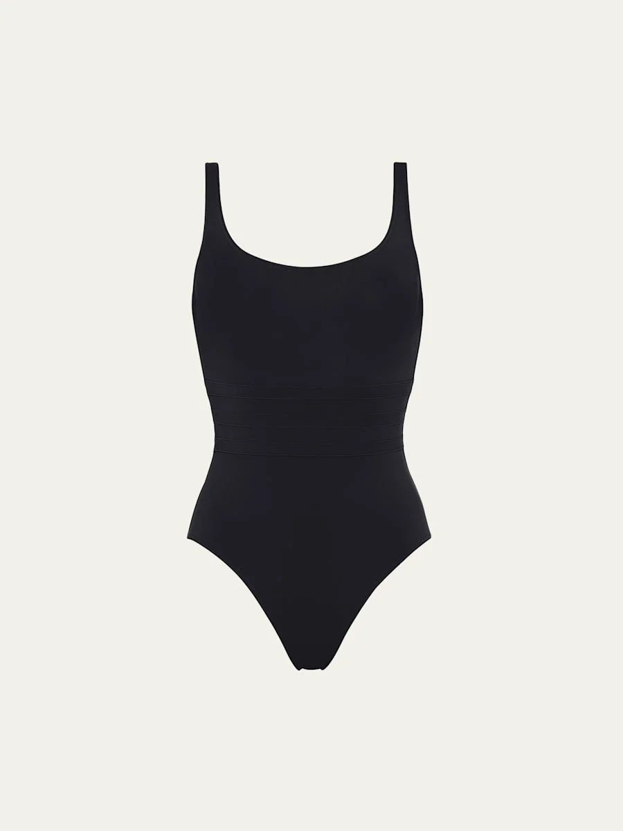 Asia Scoop-Neck One-Piece Swimsuit with Waistband Detail