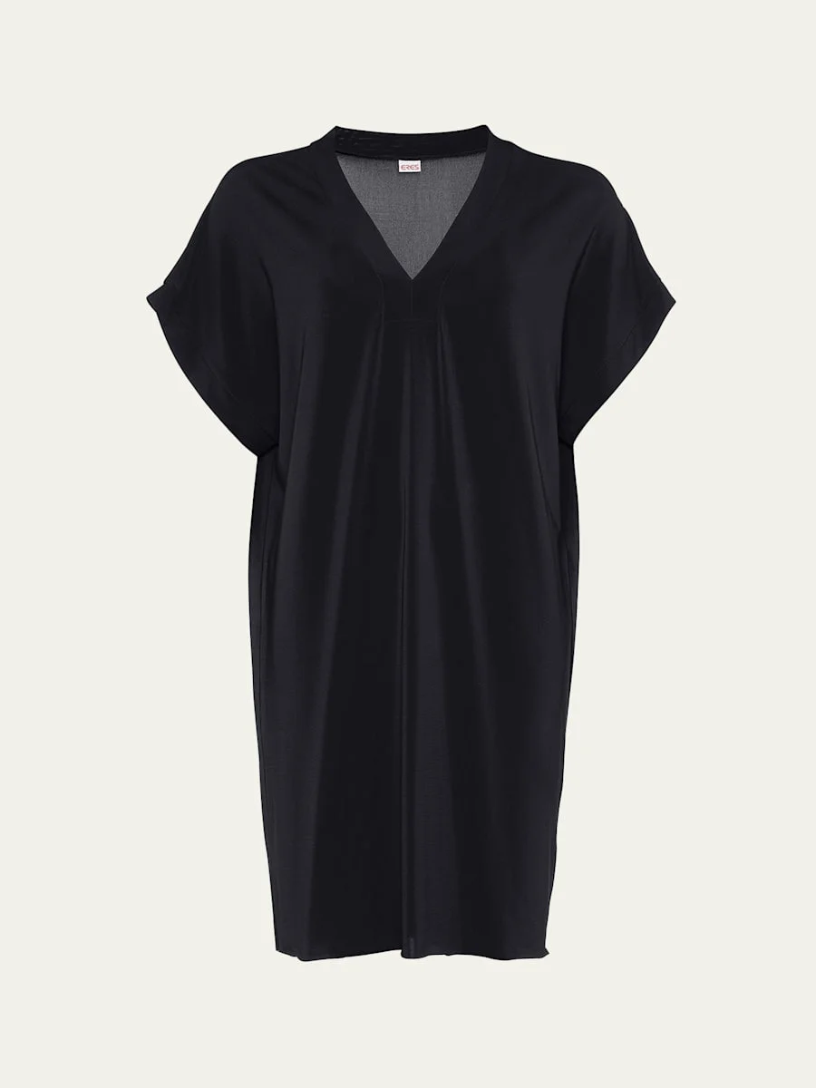 Eres "Tali" tunic coverup finished with a raw bottom seam V neckline Short sleeves Shift silhouette Hem hits around the knee Slipover style Nylon/polyamide/spandex Made in France Model is 5'10"/177cm. Online Inquiries: BGS21_T4MCC| Store Inquiries: #4523316