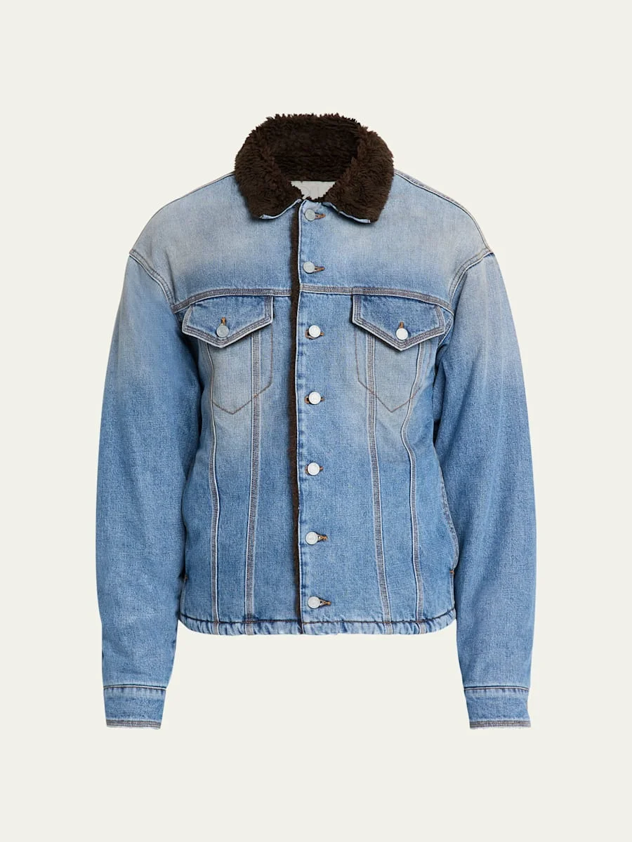 Men's Denim Shearling Collar Trucker Jacket
