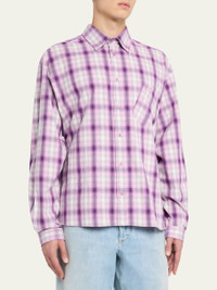 Men's Plaid Button-Down Shirt with Assymetric Pocket