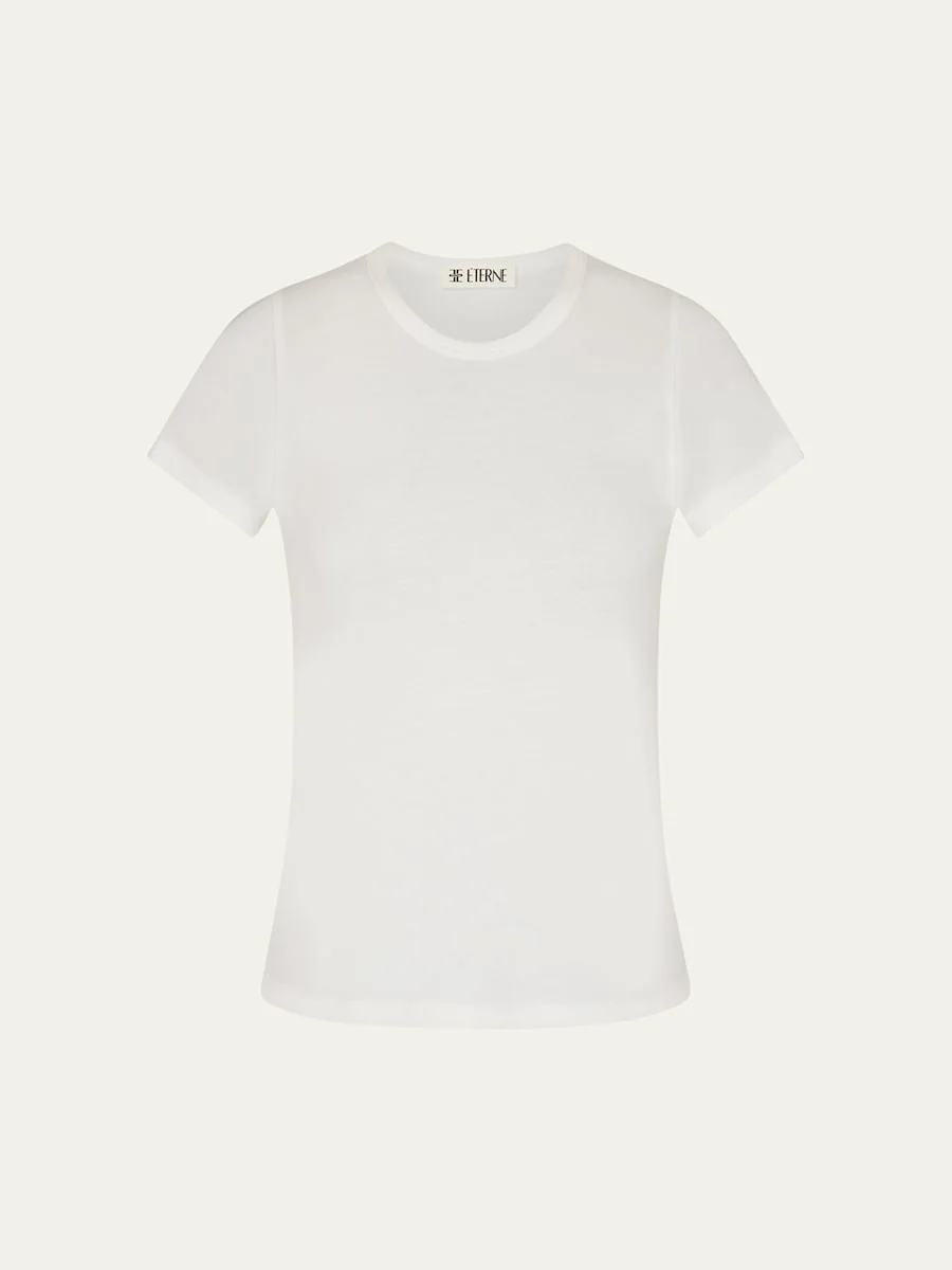 Short Sleeve Baby Tee cropped cotton and modal-blend jersey T-shirt Ivory