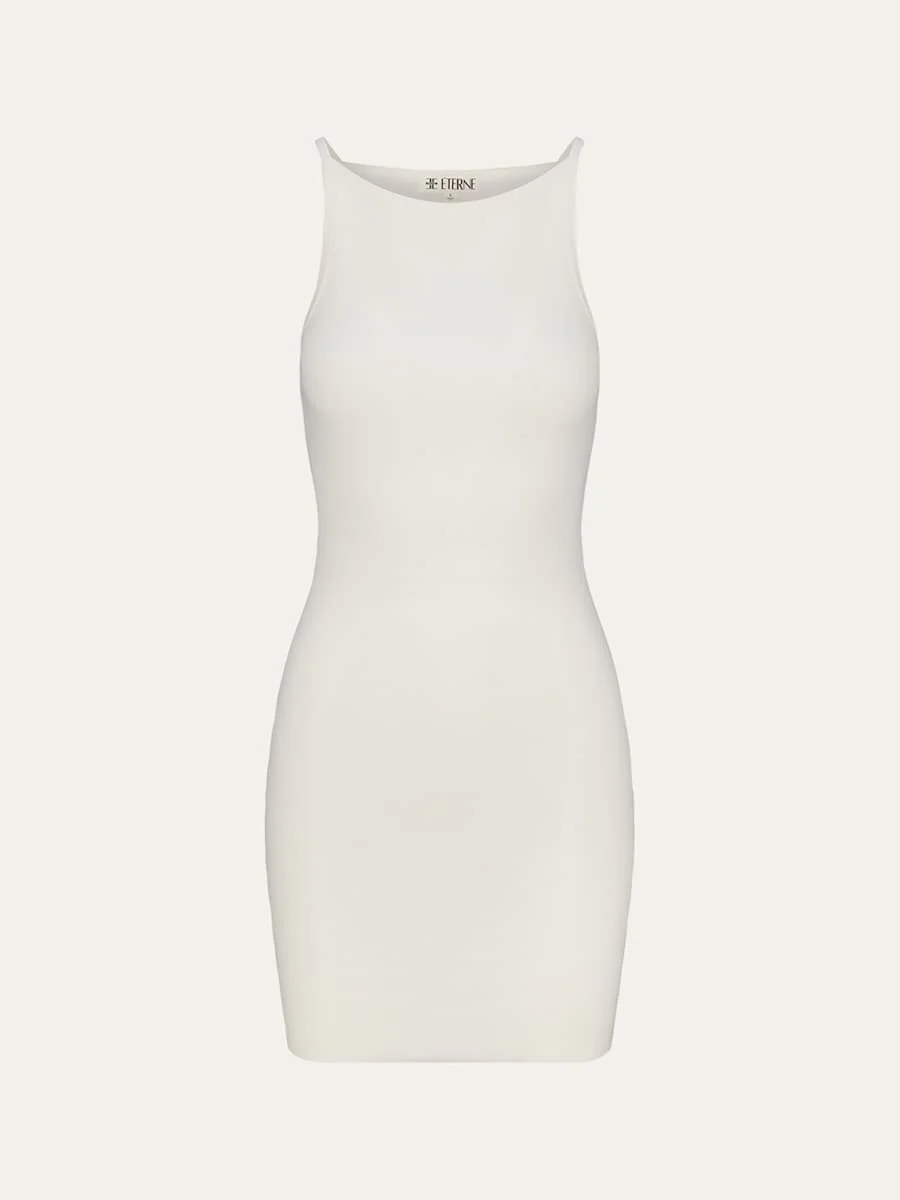 Eterne "Iris" dress crafted from a butter soft ribbed cotton and modal blend High neckline Sleeveless Hem falls above the knee Bodycon fit Slipover style Cotton/modal Made in USA from imported materials Online Inquiries: BGS21_T6N08| Store Inquiries: #5015629