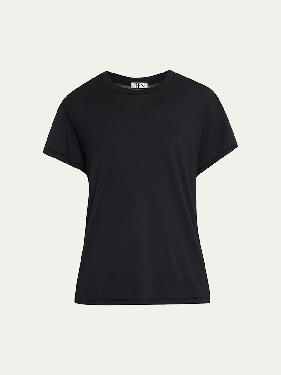 Eterne T-shirt with an unfinished raw edge detail on the neckline Scoop neckline Short sleeves Relaxed fit Pullover style Cotton/modal Made in USA from imported materials Model is 5'10"/177cm. Online Inquiries: BGS21_T8TDM| Store Inquiries: #4458928