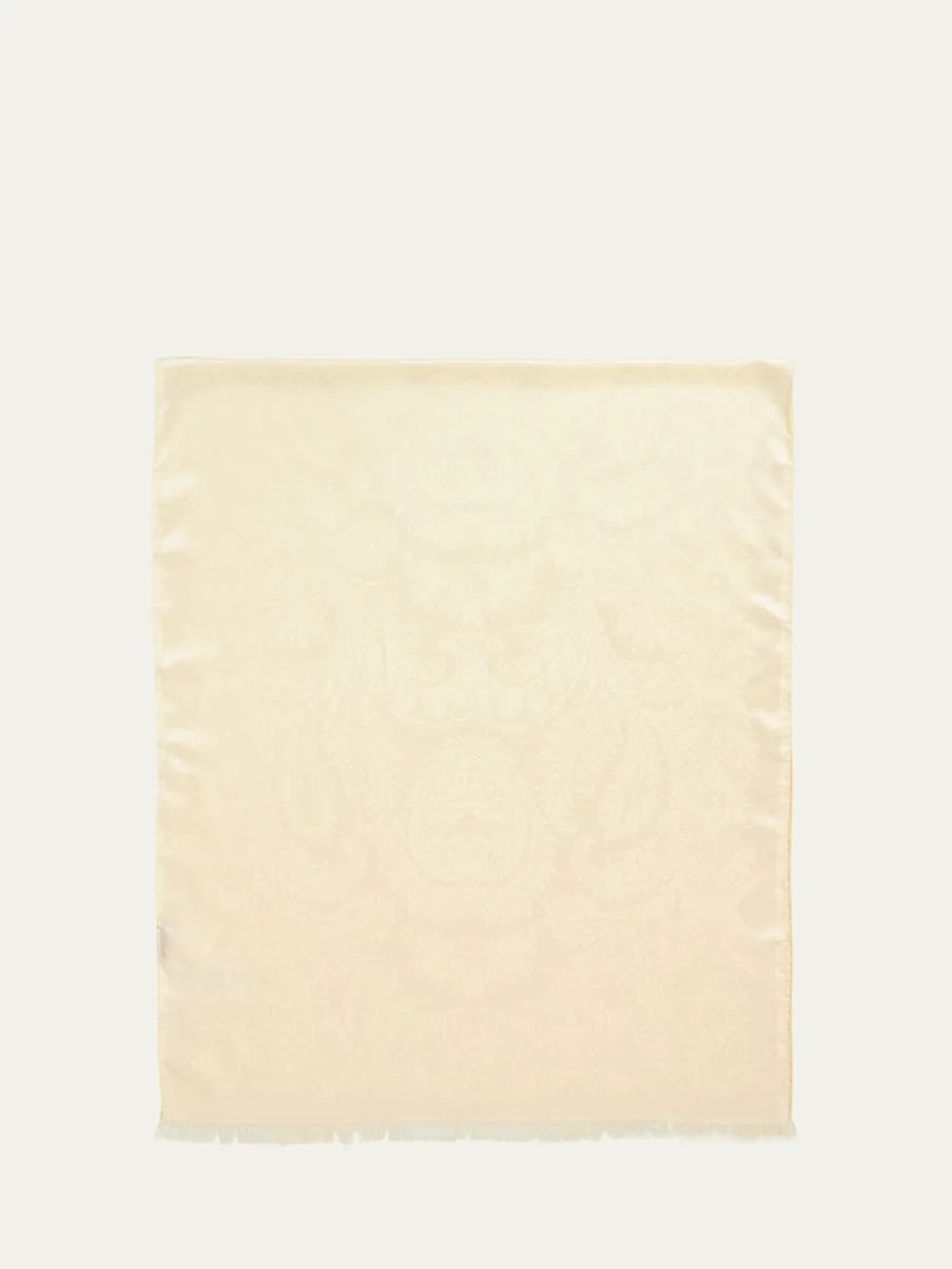 A tonal variation of the house's signature paisley dons the surface of this elegant scarf by Etro Approx. 66.9"L x 27.6"W Fringed edges Can be styled multiple ways Silk/wool Professional cleaning recommended Made in Italy Online Inquiries: BGS21_D5BFV| Store Inquiries: #5062771