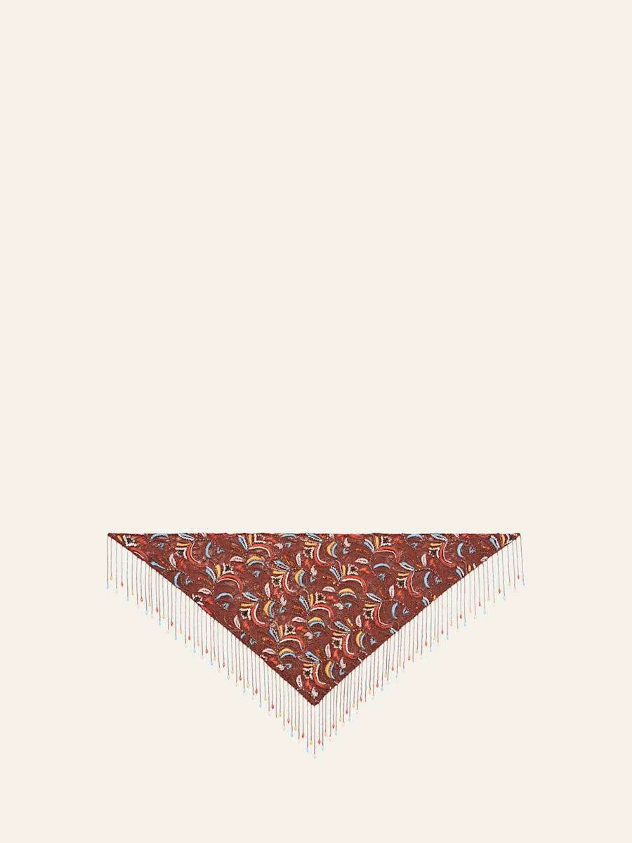 This Etro foulard scarf showcases a paisley lace motif enhanced with beaded embroidery. Beaded fringe trim May be styled multiple ways Nylon/polyamide/elastane Professional cleaning recommended Made in Italy