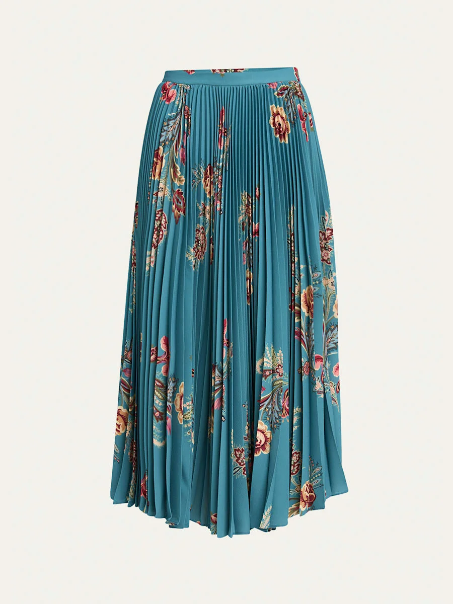Etro floral-print midi skirt finished with pleating High rise A-line silhouette Hem falls below the knee Side zip Polyester/elastane Professional cleaning recommended Made in Italy Online Inquiries: BGS21_BA71S| Store Inquiries: #5043901