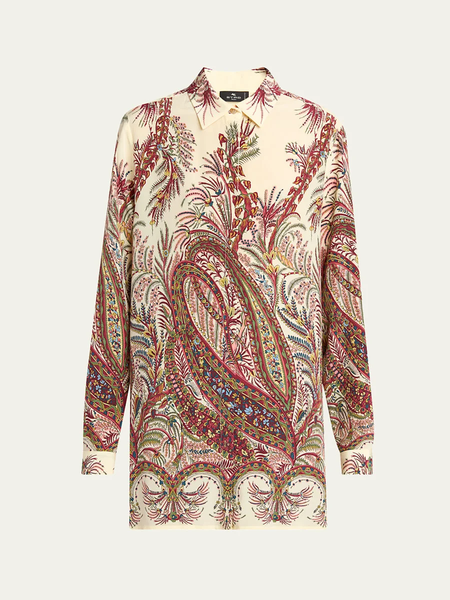 Etro silk shirt with a vibrant paisley print Point collar Long sleeves with button cuffs Classic fit Hem falls to the hip Button-front Silk Professional cleaning recommended Made in Italy Online Inquiries: BGS21_BA71K| Store Inquiries: #5043894