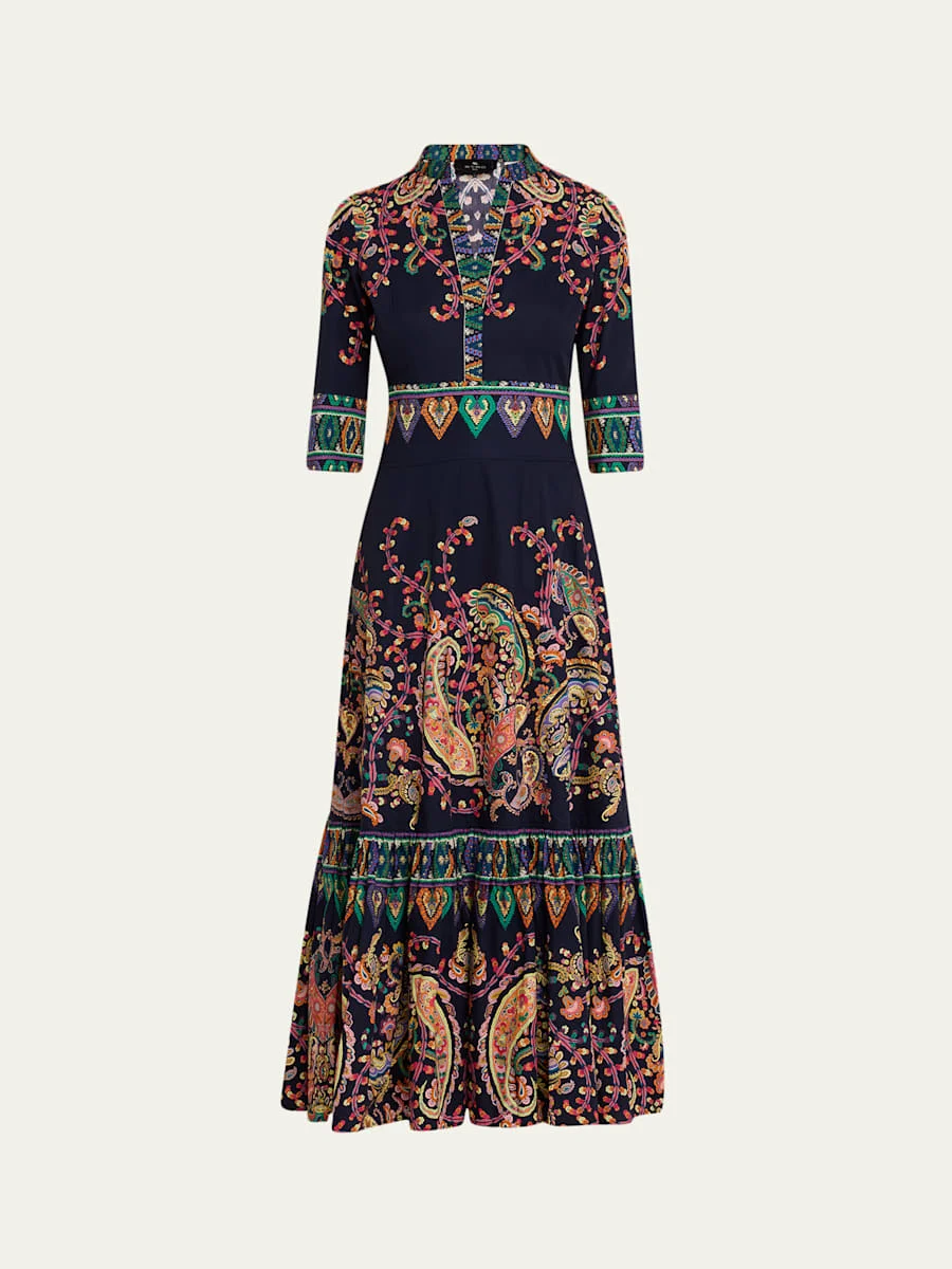 Paisley Cotton 3/4-Sleeve Maxi Shirtdress