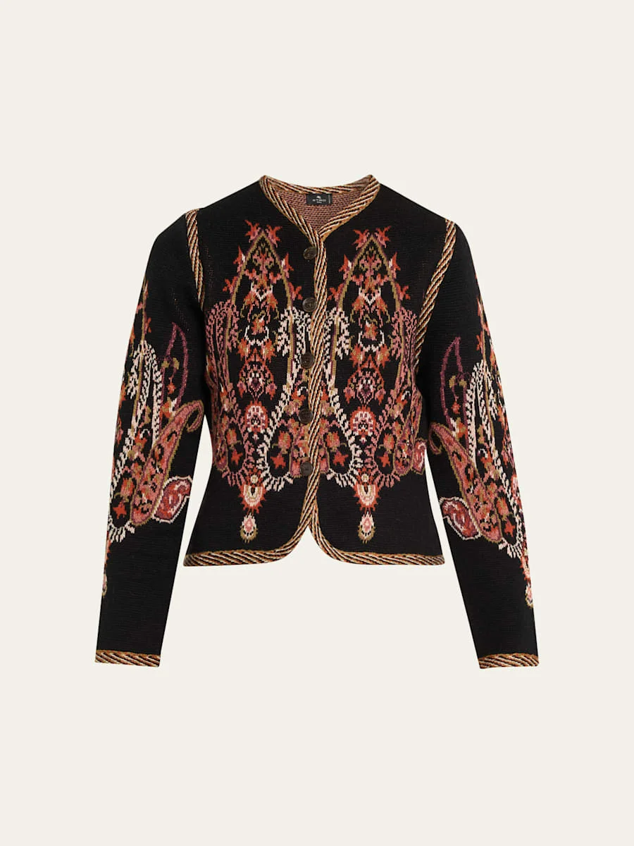 WOOL-BLEND JACQUARD CROPPED CARDIGAN WITH PAISLEY MOTIF