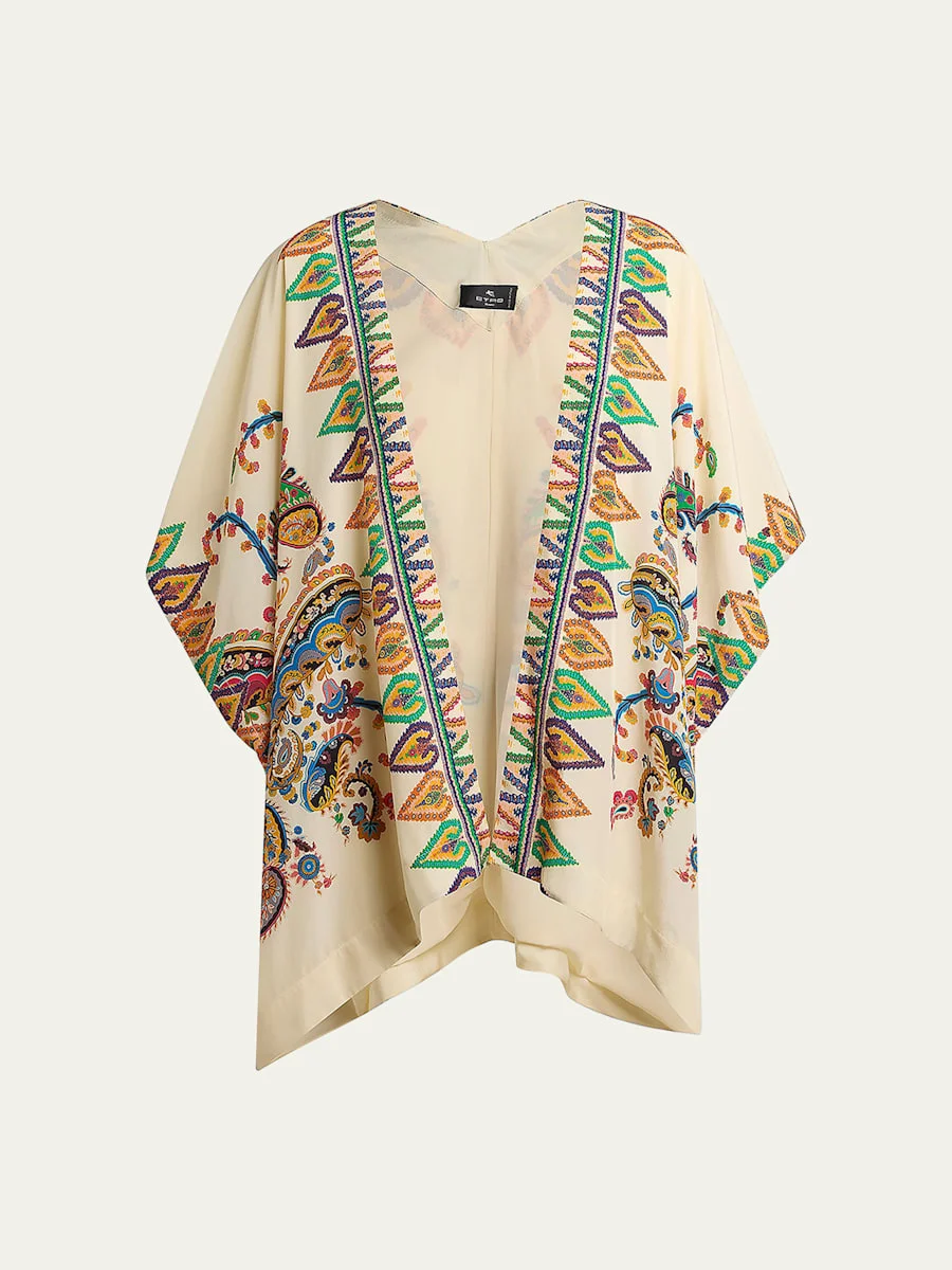 Etro's beach coverup showcases a vibrant, multicolored paisley motif. Open front Kimono sleeves Relaxed fit Viscose Made in Italy