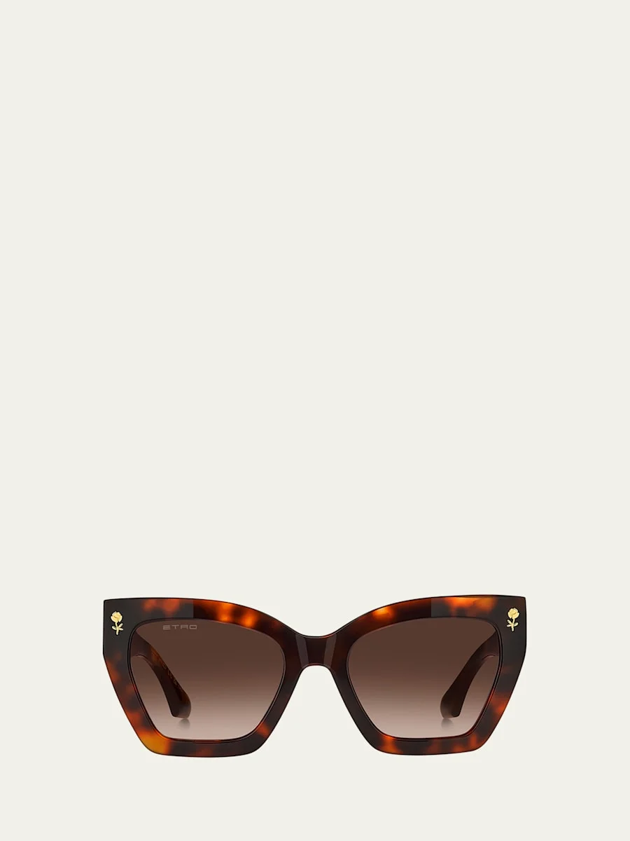 Etro rectangle sunglasses in acetate Eye/bridge/temple (in mm): 5521145 Gradient lenses Saddle nose bridge Wide, tapered arms Logo printed at the temples Acetate Wipe clean 100% UVA/UVB protection Imported