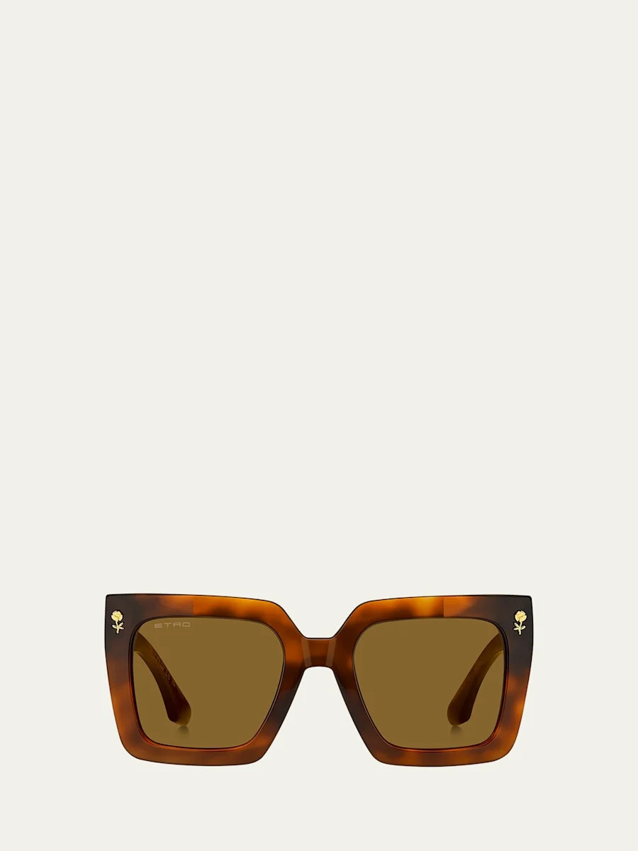 Etro square acetate sunglasses Eye/bridge/temple (in mm): 5222145 Gradient lenses Saddle nose bridge Thick, tapered arms Logo printed at the temples Acetate Wipe clean 100% UVA/UVB protection Imported