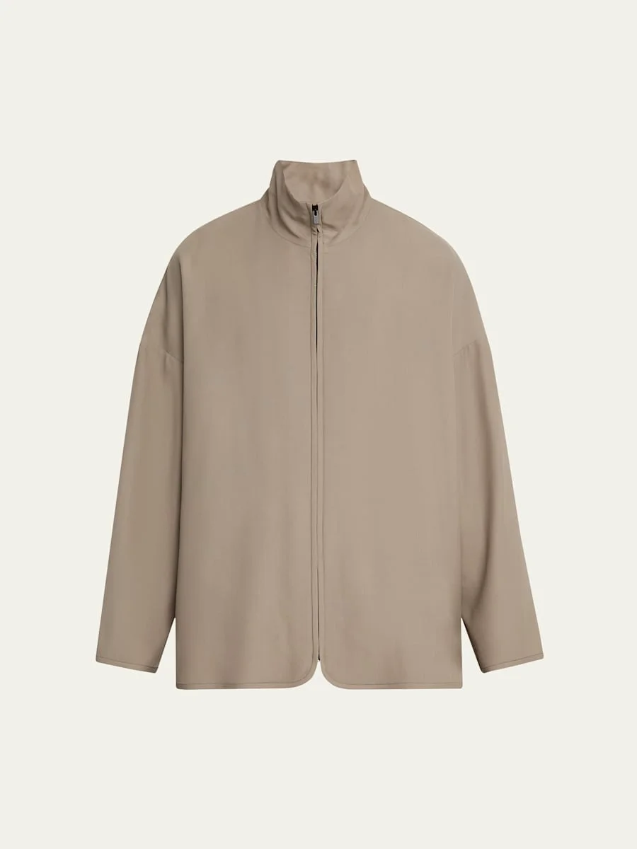Fear of God solid jacket with smooth handfeel High neckline Zip closure Relaxed silhouette with dropped shoulders Long sleeves Virgin wool/viscose Made in Italy Proposition 65 warning for California residents Online Inquiries: BGS21_NCUTL| Store Inquiries: #4955747