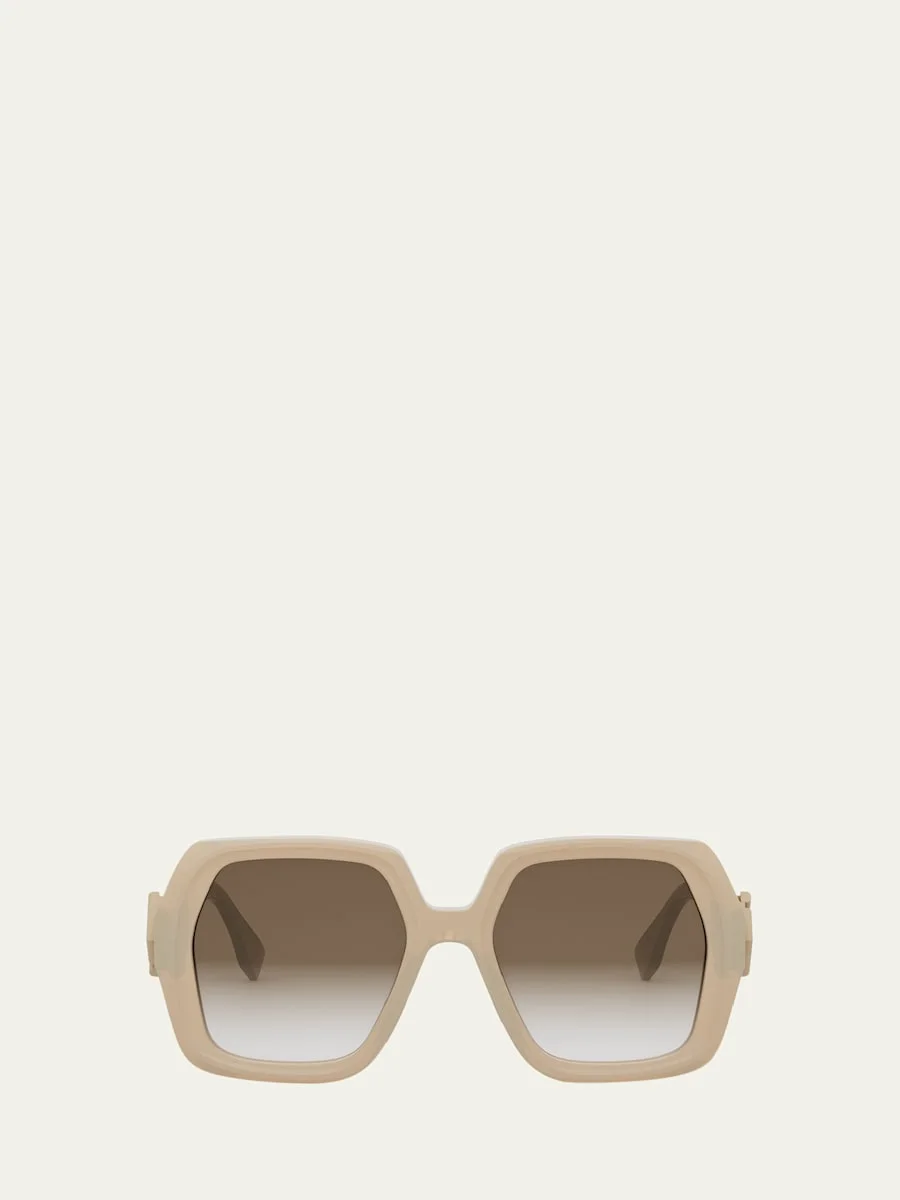 Fendi "Fendi Diamond" oversized square sunglasses in acetate Lens/bridge/temple (in mm): 5318145 Saddle nose bridge FF logo on temples Thin, tapered arms Hand wash 100% UVA/UVB protection Made in Italy