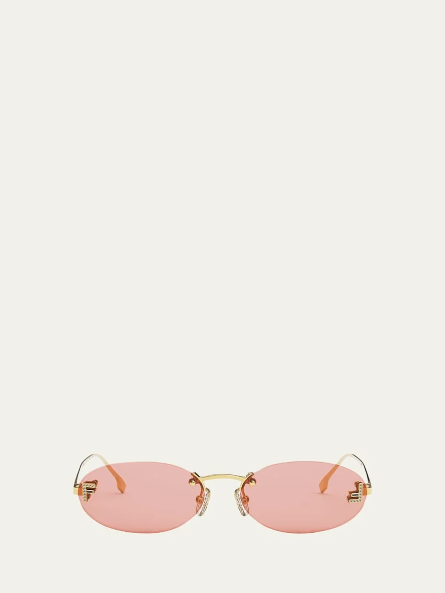 Fendi rimless oval sunglasses in metal with crystal embellished F accents on frames Lens/bridge/temple (in mm): 5415135 Adjustable nose pads Logo engraved on temples Thin, tapered arms 100% UVA/UVB protection Made in Italy